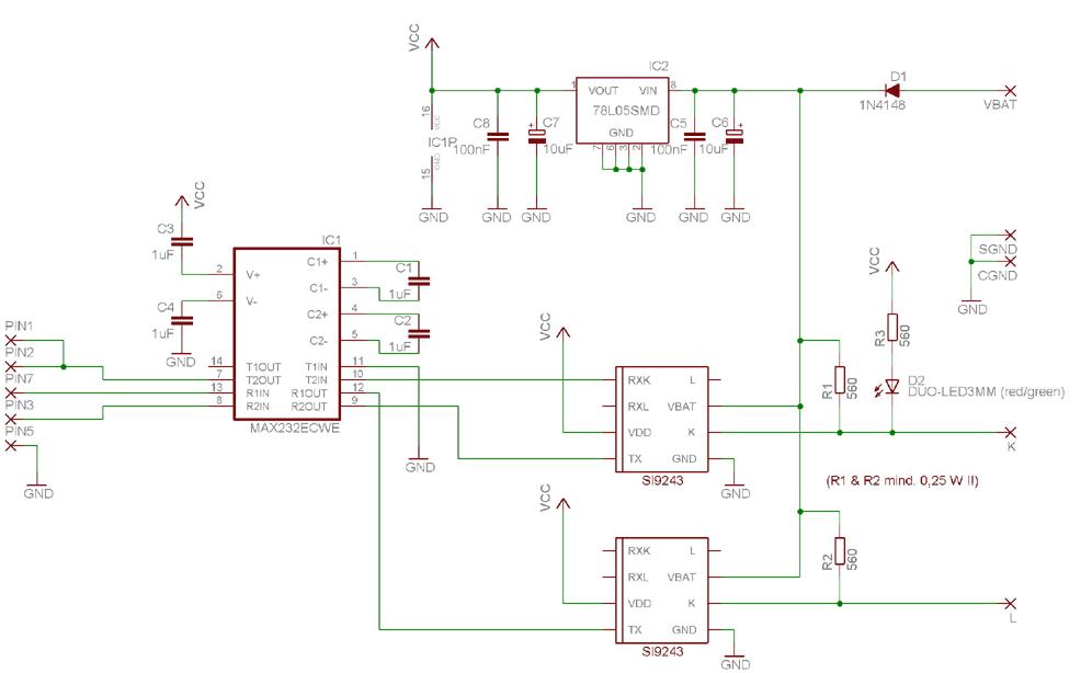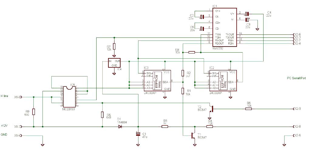 Szukam schematu interfejsu z którym będzie działał Vag Eeprom Programmer, czyli schematu fejsa z pojedynczą linią K. Większość z tych dostęponych na necie jest na max323 - czy ktoś dysponuje schematem na MC33199??