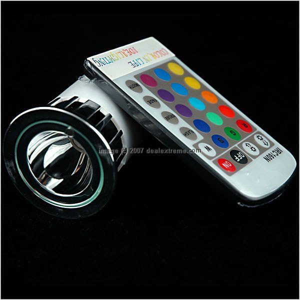 Warto przedstawić to urządzenie, ze względu na jego pomysłowość i fakt, że może znajdzie się ktoś, kto postanowi skonstruować coś podobnego. Produktem, który pojawił się w sprzedaży jest lampka LED obudowana w oprawce od żarówki. To, co ją wyróżnia, to możliwość sterowania poprzez dołączony pilot (komunikacja przez podczerwień). 24 przyciskowy pilot pozwala wybierać pomiędzy 15 dostępnymi kolorami (łącznie z białym), intensywnością świecenia oraz posiadający dodatkowe funkcje takie jak stroboskop (co bardziej wredni użytkownicy mogą w łatwy sposób sprawdzać czy ktoś ze znajomych oby nie jest epileptykiem).