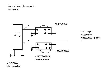 moj sterownik ma 3 rodzaje polaczen, 2*minus, 2*plus, i ostatni jedne przewod gdzie tam (dokaldnie nie pamietam) , drugi na pompke,