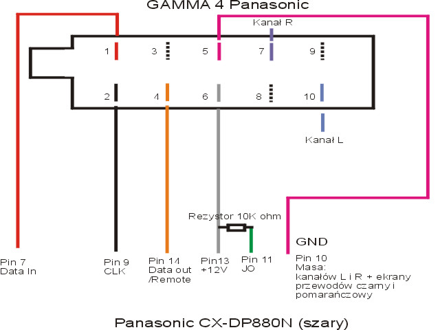 posiadam Gamme 4 (panasonic) i równiez zmieniarke panasonica CX-DP880N!!! jak to razem podpiąć? do zmieniarki mam oryginalny kabel ale jest zakończony okrągłą wtyczna a w radiu mam iso 10!!