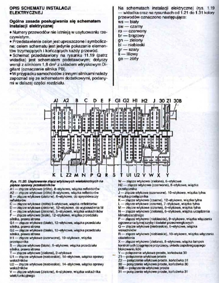 Wszystkie inne wyprowadzenia są podłączone. Sterownik działa poprawnie. Schemat elektryki passata, którym dysponuje jest mało czytelny. Proszę o informację o symbolu złącza w płycie opraw bezpieczników i przekaźników, ewentualnie kolory tych przewodów. Wydaje mi się że to jest złącze "K".