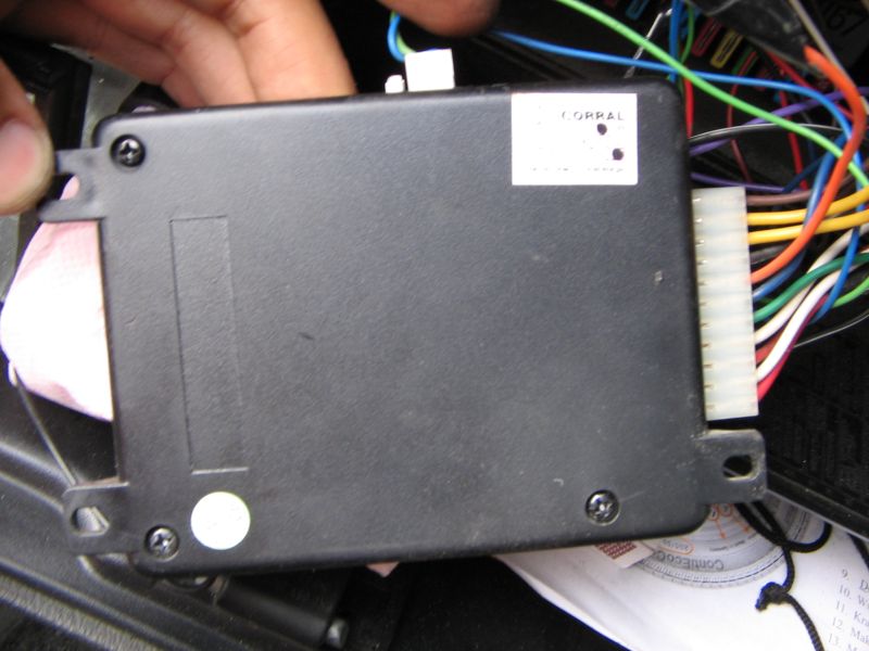 co z nim może być nie tak. Z tego co jest napisane na obudowie to jest to alarm Corral. Wydaje mi się że pilot jest popsuty. Brakuje w nim jednego przycisku na płytce. Reszta przycisków działa bo dioda się świeci jak je przyciskam. W ogóle to alarm jest wyłączony. Kable od syreny są odłączone i nie ma bezpieczników które są na kablu przy obudowie. Jest też tam taki mały przełącznik który jest widoczny na zdjęciach. Jak wsadziłem bezpieczniki to dioda w samochodzie cały czas się świeciła. Z alarmem został również założony centralny zamek który zamyka drzwi ale niestety tylko kluczykiem.