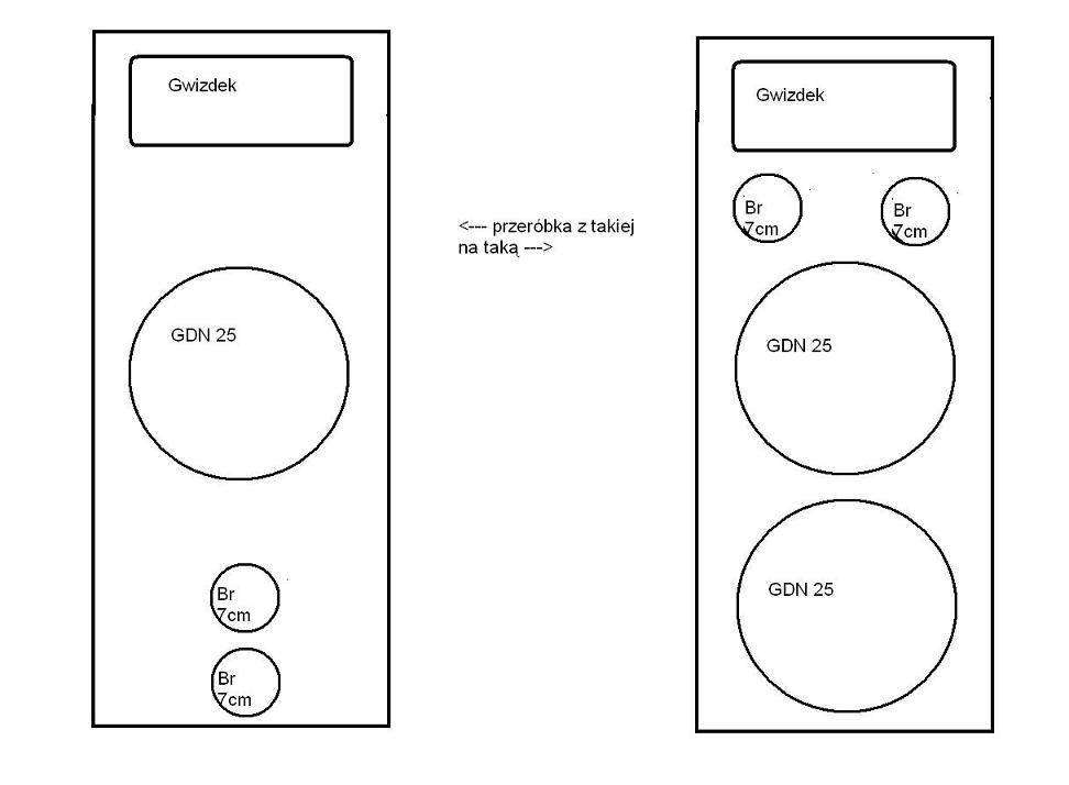 niżej zamieszczam schemat a mianowicie chciałbym abyście mi bez słówkrytyki odpowiedzieli czy jeśli przerobie kolumny jak jest pokazane w schemacie to czy będzie lepszy efekt krutka odpowiedź opłaca się czy nie i jakie efekty a takze wady na tym uzyskam