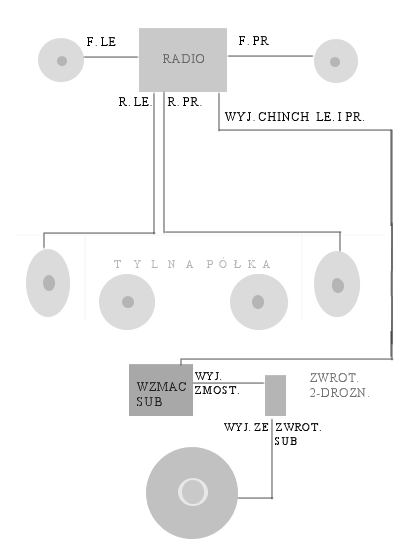 a drugie pytanie.. jeśli byłby tam użył subwoof jednocewkowy to jak podłączy sygnał z lewego i prawego wyjścia zwrotnicy do takiego glosnika? (druga częśc rys