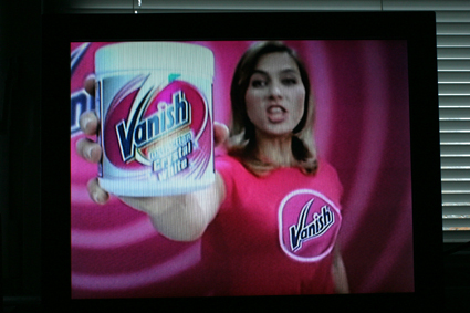Jeszcze raz powtarzam-fotografująć przedmiot świecący własnym światłem wykorzystujemy jego własną luminancję. Oświetlenie fleszem zmniejszy jedynie kontrast obrazu. Efekt taki sam jak oświetlenie ekranu z bliska silną lampą. To, że mxs zrobił zdjęcie, na którym widać obraz, świadczy jedynie o bardzo słabej mocy flesza (jaki jest zawsze w aparatach cyfrowych) a jednocześnie wyraźnie widać jego słabą jakość i b. mały kontrast. Przy silnej lampie obrazu na ekranie prawie by nie było widać. Paweł pisze o problemie zupełnie innym (a trzeba było się uczyć fizyki, nie ma tu nic do rzeczy rozdzielczość matrycy aparatu ani tym bardziej rodzaj zastosowanej maski-a co przy ekranach cz.b. w których maski nie ma i nie bylo, a problem występuje) związanym z pojawianiem sie (zazwyczaj) ukośnego ciemnego pasa. Nie wystąpi on przy dłuższym czasie naświetlania, jaki przy zdjęciach ekranów należy stosować. Nie miejsce tu na długi wywód w jaki sposób jest tworzony obraz na ekranie telewizora (do znalezienia w każdej książce o zasadzie działania TV oraz w większości książek fotograficznych przy omawianiu takiego tematu. Najlepsze zdjęcia będą zawsze gdy telewizor będzie się znajdował w zaciemnionym pomieszczeniu, a nie oświetlonym, a tu jeszcze rada by fleszować. Jak się nie zna problemu, nie należy dawać rad. Jeśli ktoś, jak mówiłem, miałby silny flesz, rada ta była by nic nie warta. Poniżej zdjęcie zrobione przed chwilą z ekranu TV-reklama. Z ręki bez statywu (a taki należy zawsze stosować z powodu wydłużonego czasu naświetlania). Jak widać, bez flesza i kontrast jest nawet trochę za duży. Pozdr.