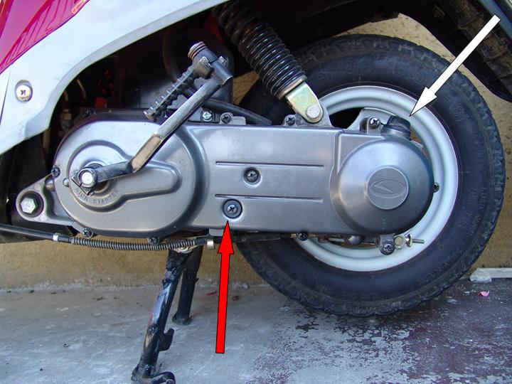 We wszystkich opisach każą odkręcić śruby i zdjąć pokrywę, żeby dostać się do wariatora. Kiedy odkęcam śrubę zaznaczoną na zdjęciu czerwoną strzałką, cieknie olej. Na pokrywie /biała strzałka/ jest gumowy korek i tam też jest olej, więc odkręcenie ostatniej śruby z prawej strony też powoduje wyciek. Czy ktoś może mi wytłumaczyć dlaczego tak się dzieje?