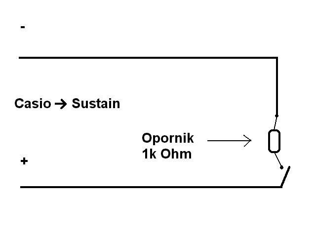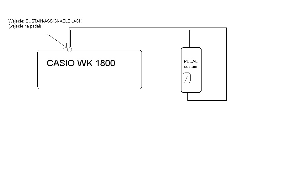 Z Jacka od Casio idą dwa przewody (+ i -) a pedał działa jak wyłącznik tj. przy naciśnięciu zamyka obwód elektryczny i w wyniku tego podtrzymuje dźwięk w keyboardzie.