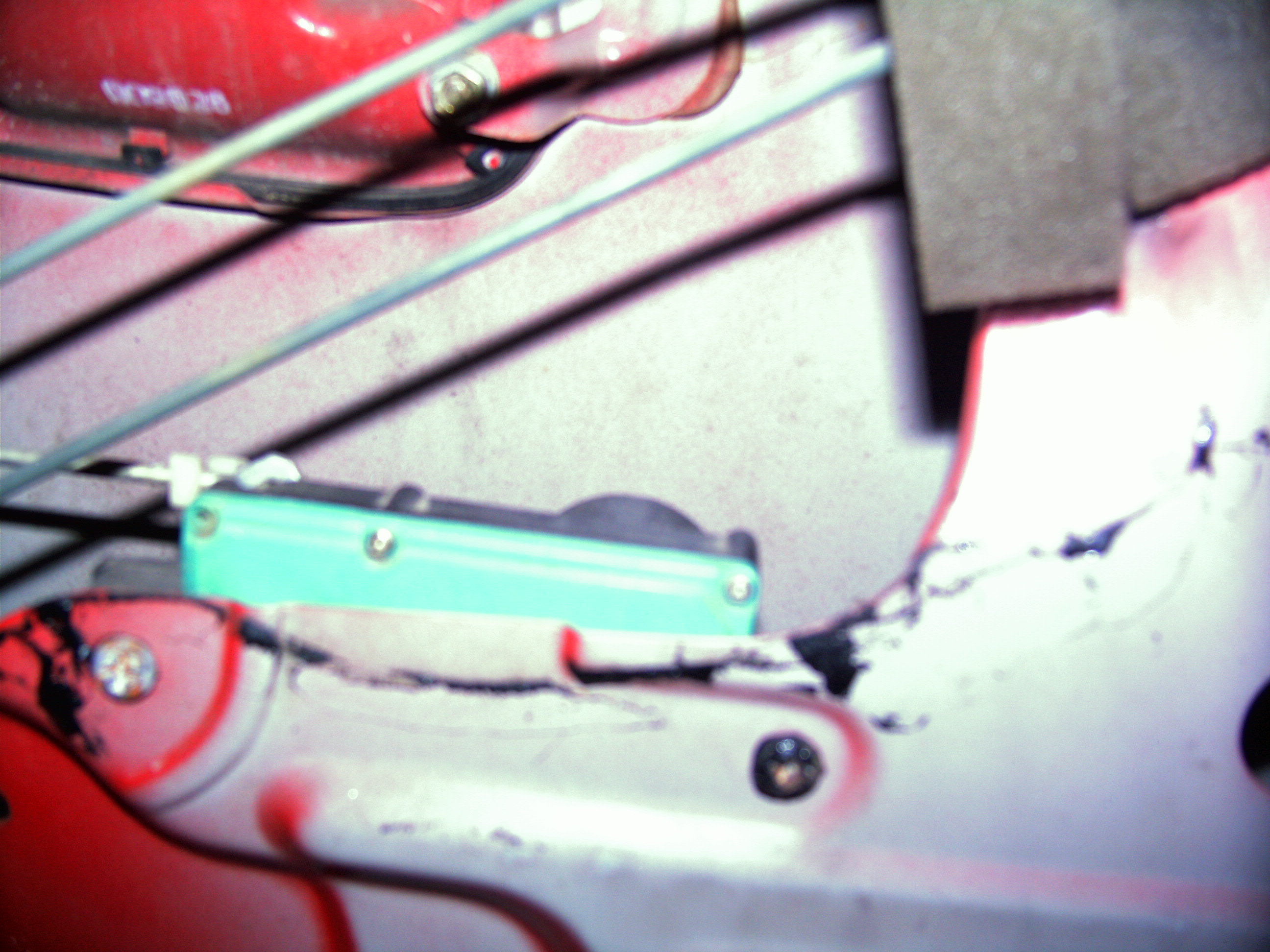 Na samym dole tego schematu są 4 warianty podłączenia centralnego zamka. Według mnie do tego samochodu odpowiedni jest czwarty schemat - pneumatyczny zamek. Na zdjęciu poniżej widać "pneumatic control box". Co oznacza w takim razie "central control switch". Przewody dochodzą tylko do przedstawionego poniżej układu centralnego. Przełączniki blokujące drzwi w samochodzie nie mają doprowadzeń w postaci przewodów.