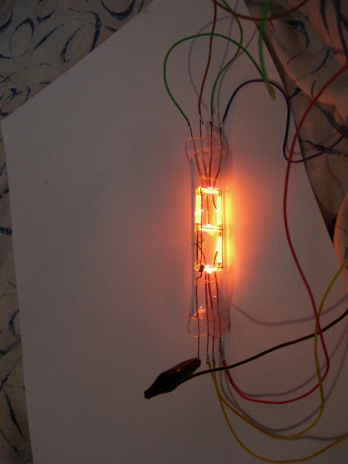 Pierwsze fotografie pokazują lampę na aparaturze pompowej. Aparatura ta jest całoszklana, przy czym spora część elementów tej aparatury została wykonana samodzielnie. Dotyczy to na przykład pompy dyfuzyjnej. Na ten temat było już jednak w innym wątku.