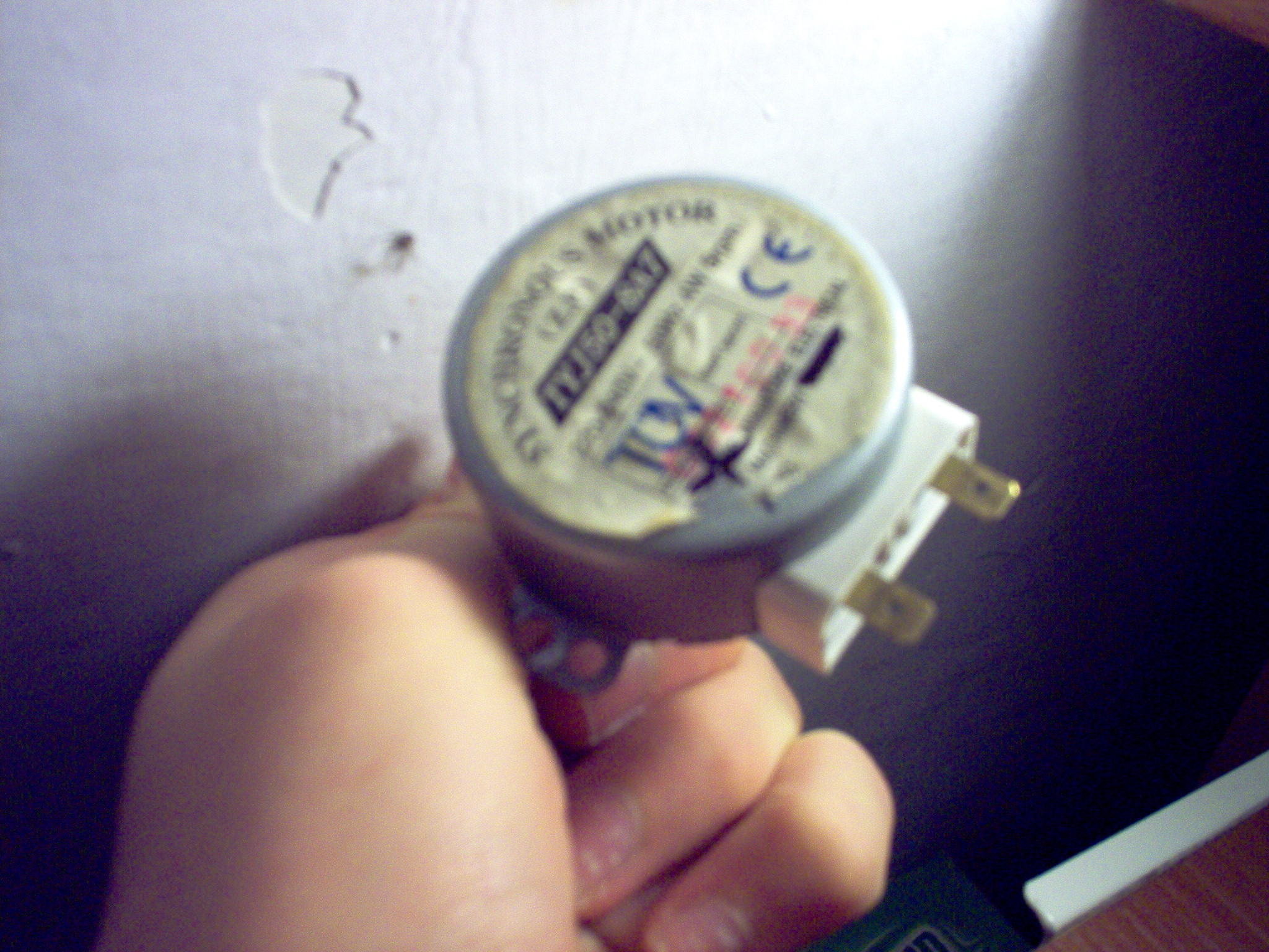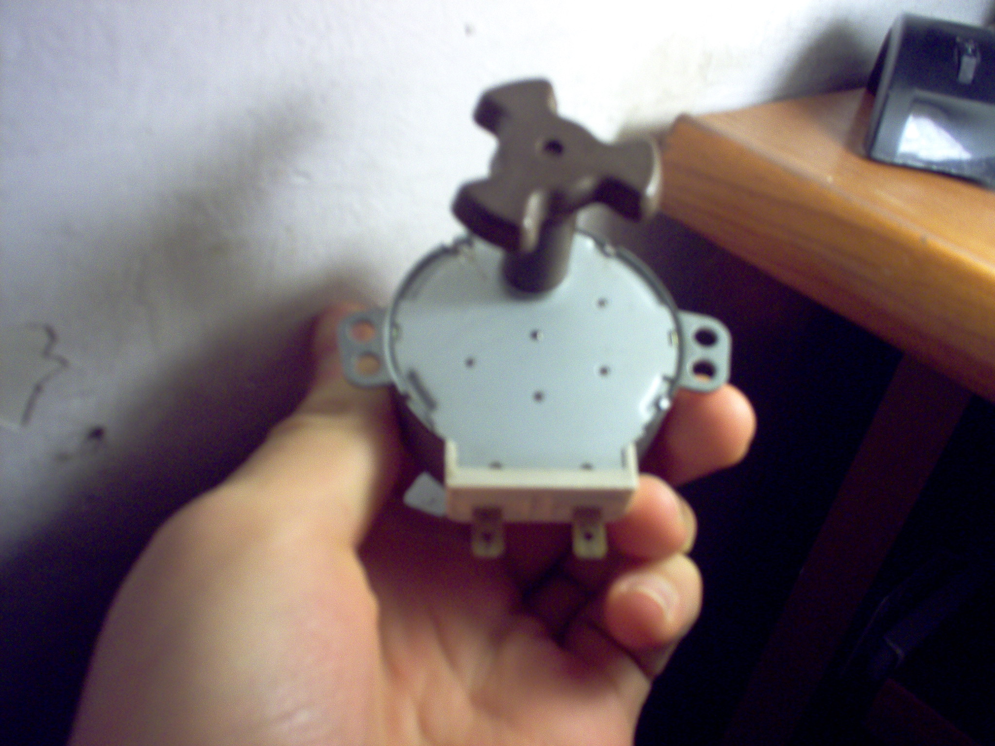 W mikrofali znalazłem też to jest to silnik który obraca talerz w mikofali ale gdy sie dotkie dwa końce tego silnika i przekręci taką jakąś korbę to bardzo porządnie kopie!