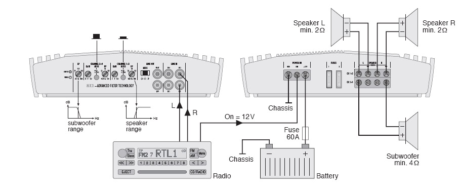 Teraz moje pytanie czy muszę poprowadzić jeszcze jeden kabel RCA z radia pod wzmacniacz czy wystarczy ten jeden, który jest pokazany na rysunku wzmacniacza.