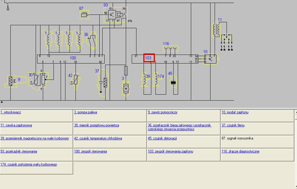wielkie dzieki to prawie ten schemat:) roznica w tym ze ja mamzaplon boscha z aparatem elektronicznym i modulem bez przemiennikow magnetycznych na kole pasowym i zamachowym do zaplonu jest modul boscha, ten silnik wystepowal tez podobno w Fiacie ritmo 75 team.