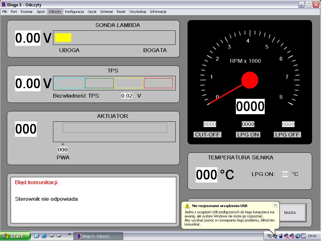 ale po podłączeniu go do auta a następnie do kompa i włączeniu programu Bingo-S wyskakuje cos takiego