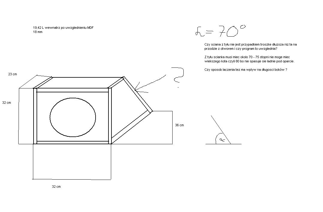 Witam zaprojektowałem skrzynie do Rockford Fosgate P1S410 jednak chciałbym żebyście zweryfikowali i doradzili i odpowiedzieli na pytania zawarte na zdjęciu.