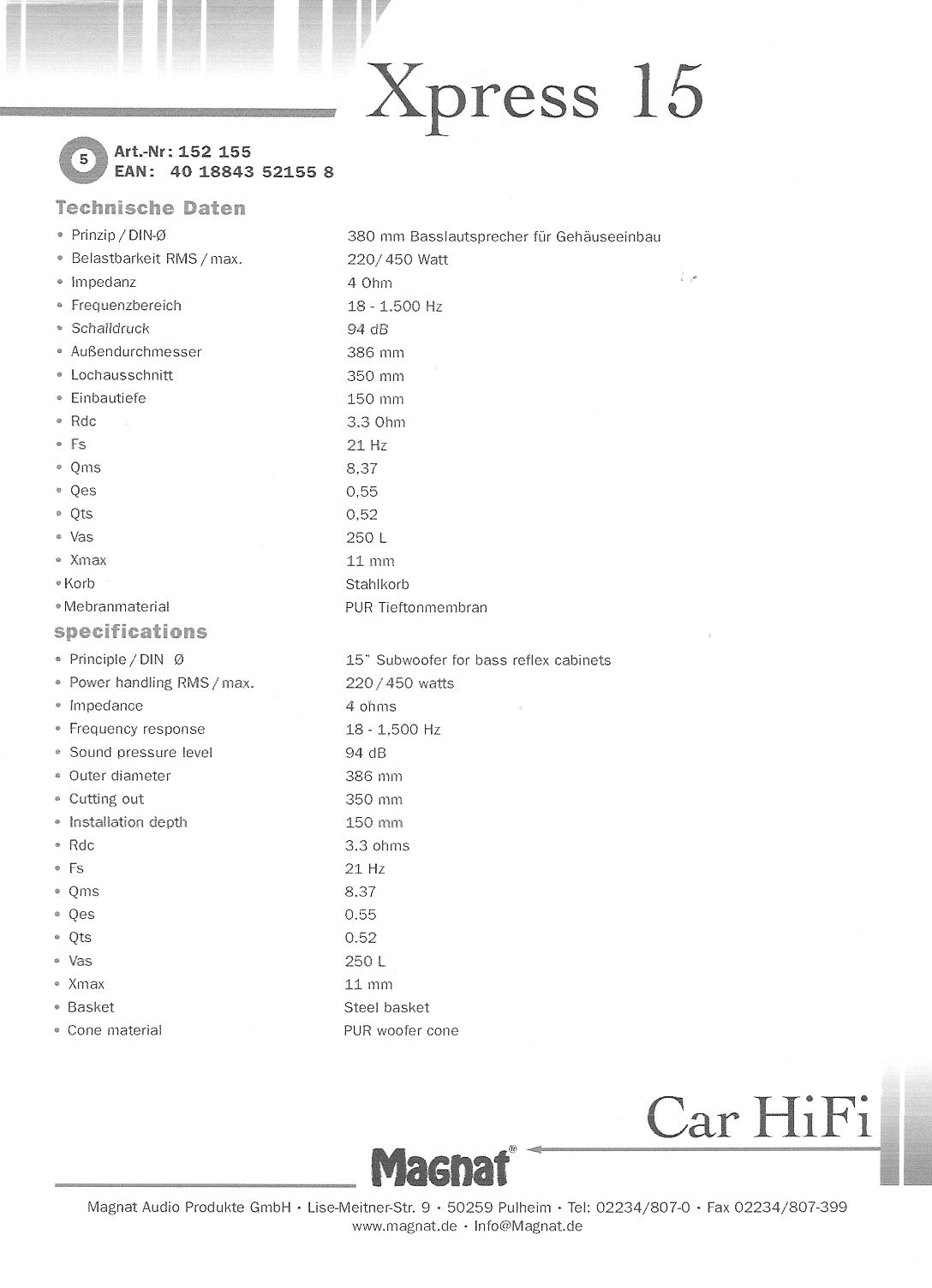 - magnat xpress 15 38cm dane załączam na zdjęciu nowy 160zł zawiesznie gumowe dość miękkie