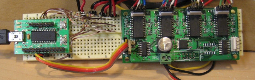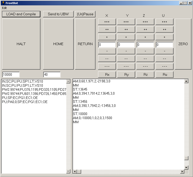 Całe urządzenie zbudowane jest na bazie maszyny do grawerowania powierzchni drewnianych. Cztery silniki krokowe są sterowane przez połączone cztery moduły wysyłające dane za pomocą dwóch rejestrów przesuwnych. Układ jest sterowany przez dostępny na www.sparkfun.com sterownik (UBW controller board) zasilany zwykłym zasilaczem komputerowym AT. Komunikacja z komputerem odbywa sie przez USB. Obrazy zaczytywane są w programie sterującym w formacie HPGL (grafika wektorowa).