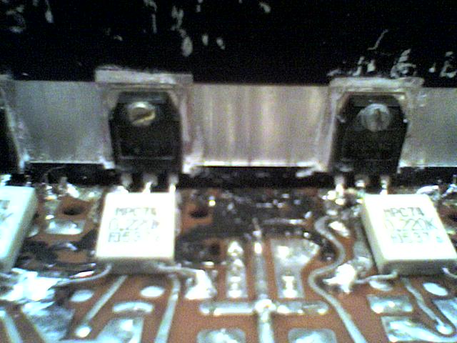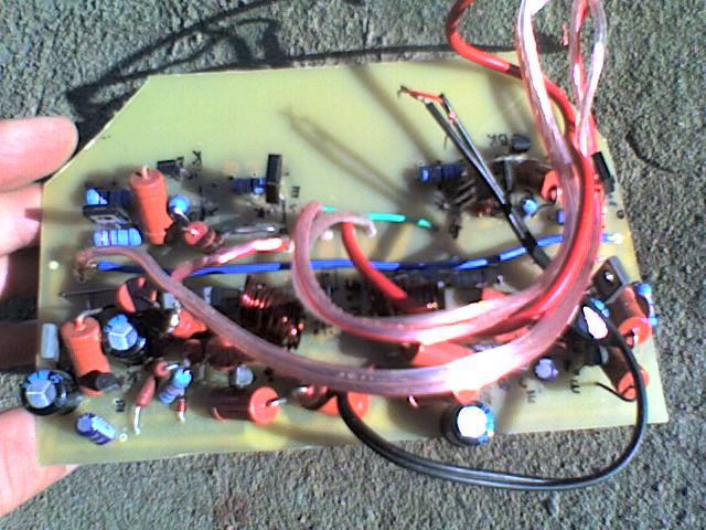 Nie sugerować sie że tranzystory mocy są nie przykręcone do radiatora, ponieważ był tylko odpalany doświadczalnie i podczas testów były małe radiatorki. Teraz ta płytka sobie leży i nie mam co z nią robić.