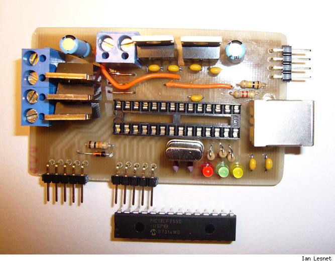 Urządzenie sterowane jest przez mikrokontroler PIC18F2550 z obsługą USB.