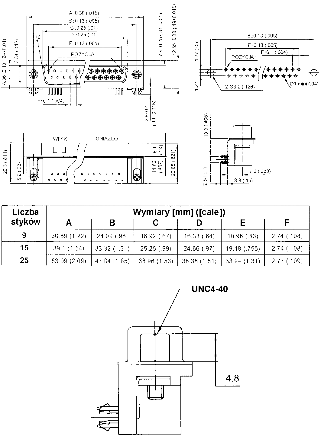 Pomocny post #2 4751772 30 Sty 2008 13:04 Konto nie istnieje Konto nie istnieje Konto nie istnieje Pomocny post #2 4751772 30 Sty 2008 13:04 Rysunek nie najlepszej jakości ale opisujący złącza DB9, 15 i 25. Wymiaru w mm i w nawiasach w calach. Ew przeglądnij ten katalog. http://www.amphenolcanada.com/ProductSearch/pdf/DSUB_CAT.pdf Załączniki: db.gif Download (30.93 KB)