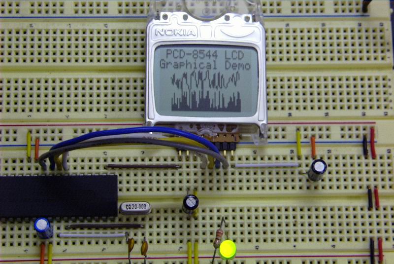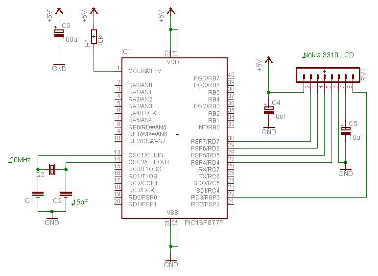 W związku z tym, że graficzne LCD z nokii 3310 są stosunkowo tanie i łatwo dostępne, to poniżej przedstawiam, jak wysterować taki ekranik z mikrokontrolera PIC16F877P. Wyświetlacz bazuje na mikrokontrolerze PCD8544, który jest produkowany przez Philipsa. bardzo łatwo jest go podłączyć, do interface'u SPI. Oto opis poszczególnych Pinów: