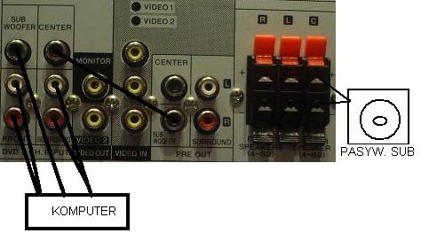 Myślę o połączeniu wyjścia na subwoofer z wejściem na kanał centralny dzięki czemu teoretycznie uzyskam wyjście z kanału centralnego jako wyjście na subwoofer pasywny :] to będzie działać tylko czy w tym wzmaku na wejściu kanału centralnego nie ma żadnego filtra który zdyskwalifikuje takie podłączenie?? pod wejścia 5+1 mam podłączonego kompa i w sumie wystarczy zamienić kanał centralny z subem dziki czemu nie będę musiał mostkować gniazd we wzmaku.... wiem wiem. strace możliwość podłączenia głośnika centralnego. ale w sumie mi on jest mniej potrzebny niż subwoofer
