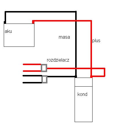 W momencie gdy odłączymy przewód minusowy i połączymy się do minusa aku przez "budę", pętla masy powinna się pomniejszyć a w zasadzie zniknąć (przewód RCA leży dosłownie na karoserii). Ale jak wcześniej napisałem przeważnie zakłóceń jest wtedy, na przekór, więcej. Być może jest to już jakiś inny rodzaj zakłóceń, nie mający związku z pętlą masy. Urządzeń prądu przemiennego, zainstalowanych z tyłu samochodu i podłączonych pod karoserię, raczej nie ma, więc dziwne by było, żeby w karoserii auta indukowały się jakieś różnice potencjałów (przemiennych w czasie) wskutek przepływających prądów.