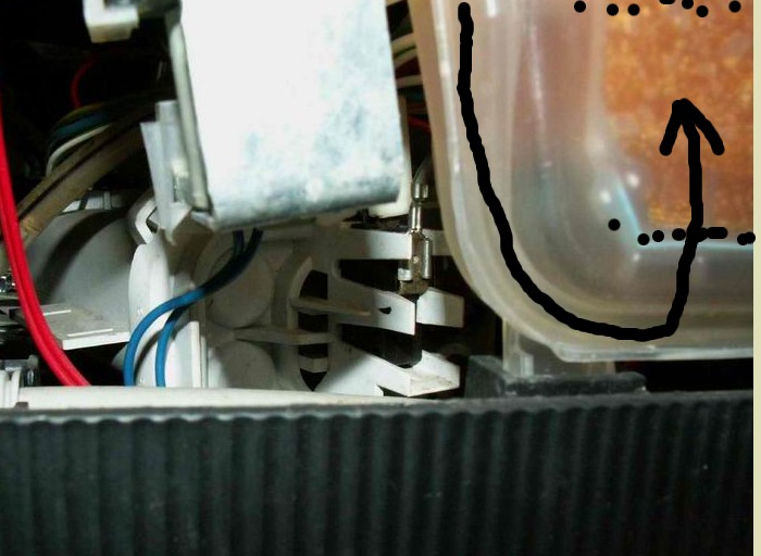 Jezeli płaszcz napełnia sie do oporu,odpada hydrostat, skoro jest mały poziom wody odpada tez elektrozawór,zostraje więc zanieczyszczony płaszcza własciwie owego pojemnika z czarodziejskimi granulkami. do pojemnika nie ma dostępu,w serwisie w tej sytuacji wymiana na nowy płaszcz i kasuję 4-6stów.Ja zrobiłem tak