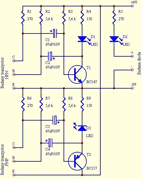 Przy konstruowaniu i naprawie uładów elektronicznych często zachodzi potrzeba sprawdzenia tranzystora czy diody, przy pomocy tego układu bardzo szybko można sprawdzić czy dany tranzystor lub dioda jest sprawny.