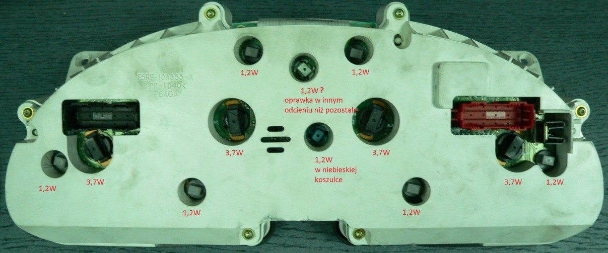Nie działa podświetlanie zegarów. Padł najprawdopodobniej tranzystor sterujący jasnością świecenia (wstawione były za mocne 5 watowe żarówki)