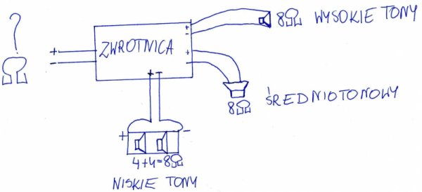 Podobnie jest z filtrami i impedancjami średniaka i kopułki. Filtry mają je rozdzielić żeby nie grały tego samego odcinka pasma choćby z powodu "rozjechania" się impedancji w takim przypadku bo jeżeli dwa głośniki grają to samo pasmo to ich impedancja się sumuje lub dzieli w zależności od rodzaju połączenia w tym przypadku się podzieli ze względu na połączenie równoległe głośników w zwrotnicy ale jeżeli nie przenoszą tego samego pasma to takie coś nie nastepuje - występuje za to pomiędzy filtrami gdzie dwa głośniki działają w połączeniu równoległym - filtr nie działa jak nóż i głośnik za filtrem też gra tylko im dalej tym ciszej aż do całkowitego wyciszenia.