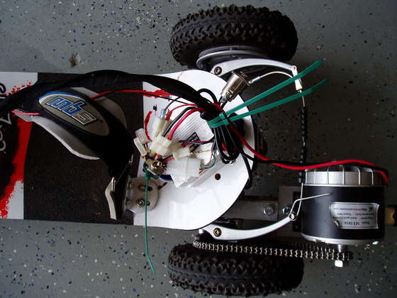 Celem projektu było przerobienie mountainboarda na zasilany elektrycznie z zachowaniem minimalnych strat na zdolności swobodnej jazdy i uszkodzenia deski. Deska wyposażona jest w hamulce, ktore mają zwiększyć bezpieczeństwo jazdy. Źródłem napędu jest silnik elektryczny o mocy 300W stosowany w tanich elektrycznych skuterach. Silnik zasilany jest parą akumulatorów 12V. Według pierwszych doświadczeń z deską energii starcza na mniej więcej 45 minut ciągłej jazdy, co może nie jest wynikiem zbyt wysokim, ale może kiedyś będą dostępne lepsze akumulatory i napędy elektryczne będą bardziej wydajne. Projekt powstawał zaledwie dwa dni. Najwięcej problemów sprawiało dopasowanie łańcucha w celu uzyskania jak najlepszych efektów.